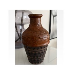 Retro vas med blommotiv och handtag.