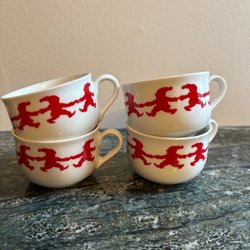 Fyra assietter från Old Höganäs. Två olika storlekar, två tallrikar av varje storlek. Mycket fint skick. Den ena är 18,5 cm i diameter och den andra är 17 cm i diameter.