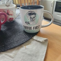 Två stengodsmuggar. Bly- och kadmiumsäker dekor och glasyr. Ugns- och mikrosäker. Tål maskindisk. 10x10 ca.