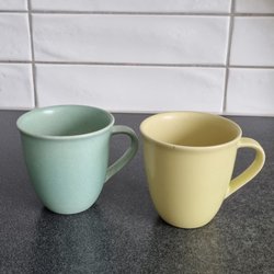Fyra Höganäs koppar i olika färger.