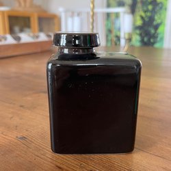 Grön burk med trälock och svart knopp.
