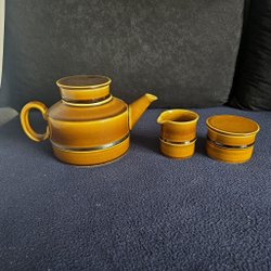 Tekanna i mycket fint skick, men streck/sprickor finns i glasyren på handtaget se sista fotot.