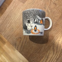 Muminmugg från Arabia med motiv av Muminpappan som seglar. Mycket fint skick, endast använd ett par gånger.