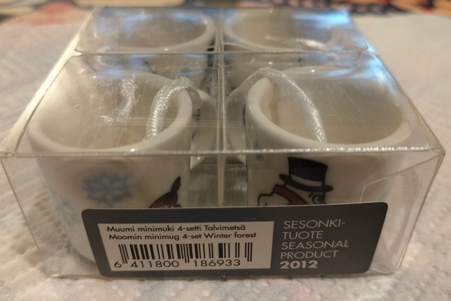 Mumin minimugg 4-set Vinterskog. Säsongsprodukt 2012. Felfria minimuggar, förpackningen är oöppnad.