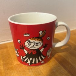Muminmugg med motiv av Lilla My, Muggen är helt oanvänd etikett och lapp sitter kvar
