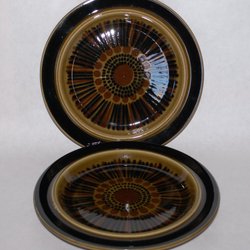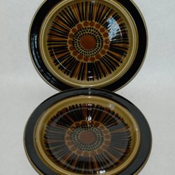 Två flattallrikar i nyskick. Formgivare Ulla Procopé, dekor Gunvor Olin-Grönqvist. 25,5 cm i diameter.