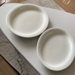 Serveringsfat från Arabia. Fatet är vitt med blått mönster