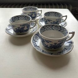 - Eleganta tekoppar med matchande fat, perfekta för den eftermiddagste stunden.