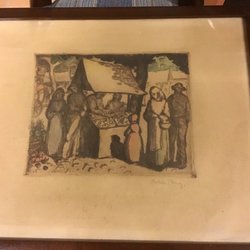 En vacker tavla med ett vintermotiv. Den visar ett landskap med träd och vatten.