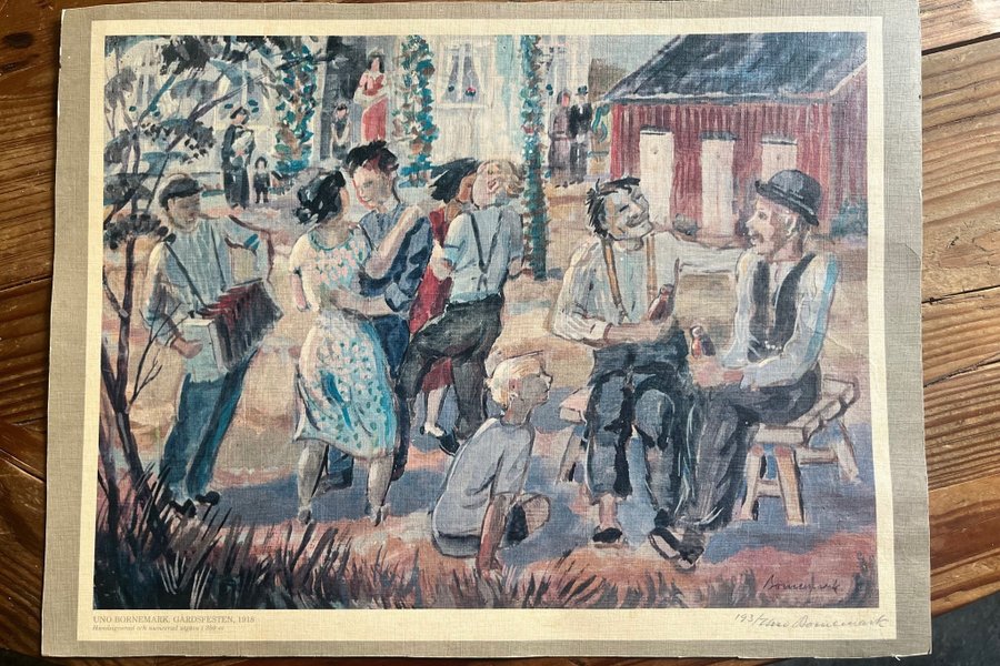 UNO BORNEMARK. tryck, Gårdsfesten, 1918. Handsignerad och numrerad utgåva 193/350 ex.