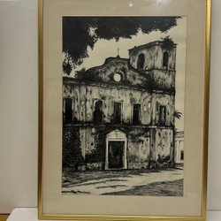 En vacker målning som föreställer ett strandlandskap med sanddyner och hav. Konstverket har en klassisk stil och fångar naturens skönhet.