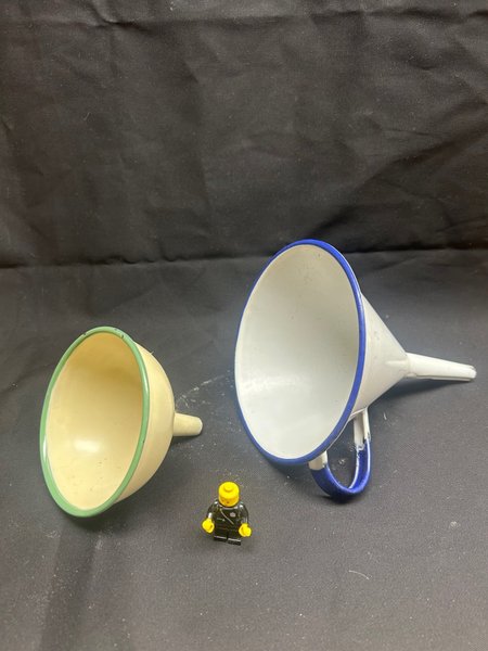 Två emaljerade trattar – retro/vintage