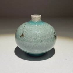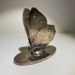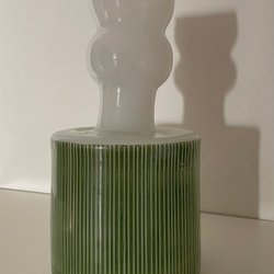 Fickurställ i jugend i någon tennluknande material. Har en fin lagning på ”halsen”. Finns även en ägarinskription. 16cm hög.