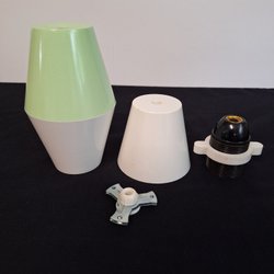Lamphållare E27 med gammal kabel och 2st isolatorer, allt i porslin. Allt är helt men smutsigt. Vikt 280g.