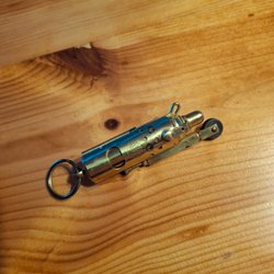 Finns något nagg vid öppningarna, se bilder. I övrigt fin. Höjd ca 10,7 cm, diameter fattningarna är 2,4cm i bägge ändar.