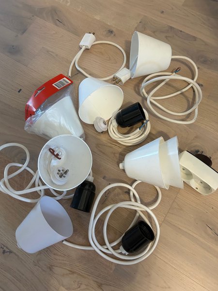 Diverse lampdelar, Inkluderar lamphållare, sladdar och takkoppar. En del nytt och en del använt.