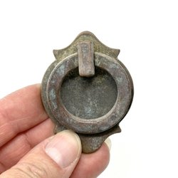#603byggnadsvård Art Deco DÖRRKNOPP D rund m platta LÅDKNOPP lådhandtag mässing plåt Handtag draghandtag beslag möbelbeslag skrin låda skåp liten dörr sortimentskåp gammal äldre återbruk reservdelar tillbehör järnhandel lanthandel art nouveau