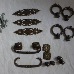 Klassiska möbelbeslag i mässingsfärg. Perfekt för att förnya eller komplettera dina möbler. Betalning sker efter auktionens slut