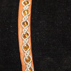 B. 3 CM. L. 16.5 CM. + LÄDERSNODDEN. MINDRE SLITAGE.