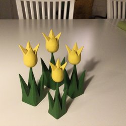 fina trätulpaner med blad i olika träslag