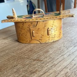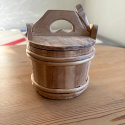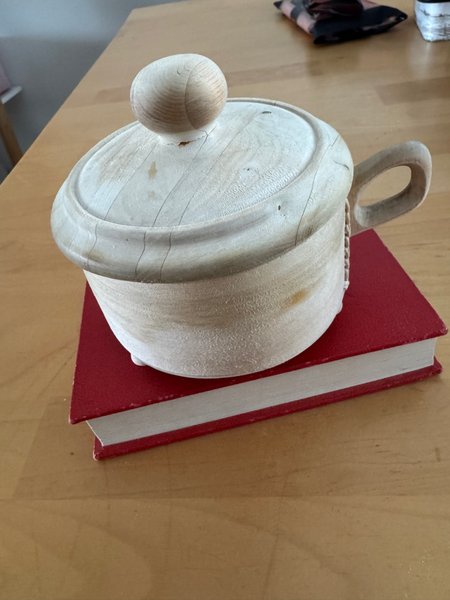 Träask med lock fungerar som exempelvis sockerskål. 10 cm i diameter ca 6 cm djup.