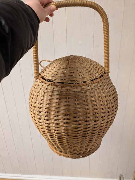 Fin flätad korg med lock. Endast avhämtning.Kan levera till Solna, Sundbyberg, Bromma mot en avgift på 100kr.