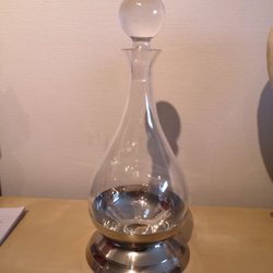 Retro karaff med propp i pressglas. Enl.bilder.