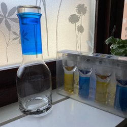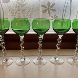 Grön karaff och tre likörglas, Trelleborgs glasbruk