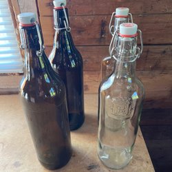 Ett antal flaskor med patentkork. Perfekt för saft, olja eller vinäger.