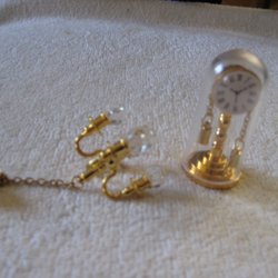 Två flaskor i glas. En stor brun flaska och en liten genomskinlig flaska. Lilla flaskan har plastkapsyl från tiden.