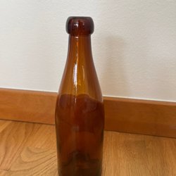 EN ÄLDRE MUNBLÅST FLASKA I GLAS! MÄRKT UNDERTILL "L" (LIMMAREDS GLASBRUK)! 350!