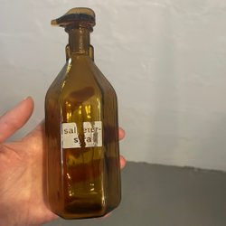 LIMMARED ÄLDRE MUNBLÅST FLASKA I GLAS MÄRKNING I BOTTEN