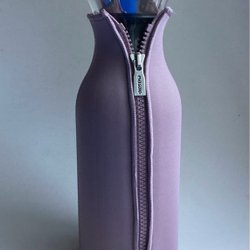 En fin karaff med lock och handtag. Den har guldfärgade ränder runt om.