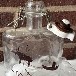 En glasflaska. Se bilder för detaljer. Kan også sendes fra Norsk postkontor.