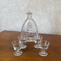Glaskaraff med tennmantel och propp i tenn och kork ( har krympt något ). Karaffen är i gott skick. Tillverkare Etains du Manoir.