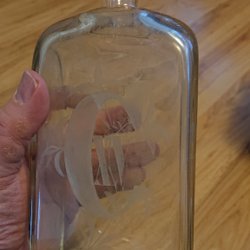 Elegant karaff i vackert slipat glas med tillhörande propp. Karaffen är i gott skick. Tillverkare okänd.