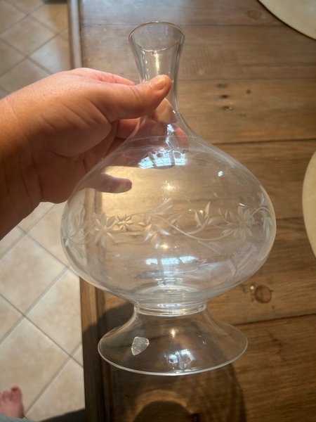 Julklapp! En vacker glaskaraff med vackra snidade blommor på. Perfekt för att servera vin eller vatten. Eller ha som vas. 22cm hög! Orrefors. Kollat värdet.