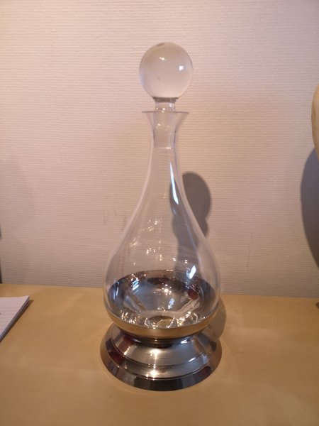 Karaff som står på seperat fot och 30 cm hög