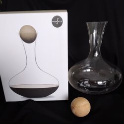 En vinkaraff med texten Husets Vin.