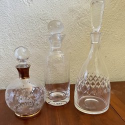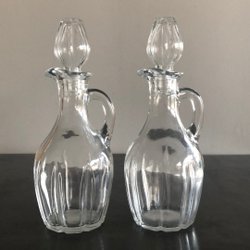Den i grönt glas är I fint skick den i slipat glas har kalkavlagringar från vatten.