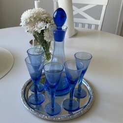 En fin karaff med tillhörande snapsglas. Perfekt för servering av drycker vid speciella tillfällen.