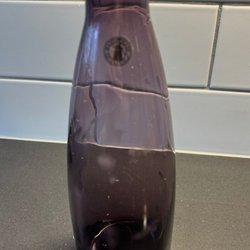 En karaff/ vas i gråaktigt glas.