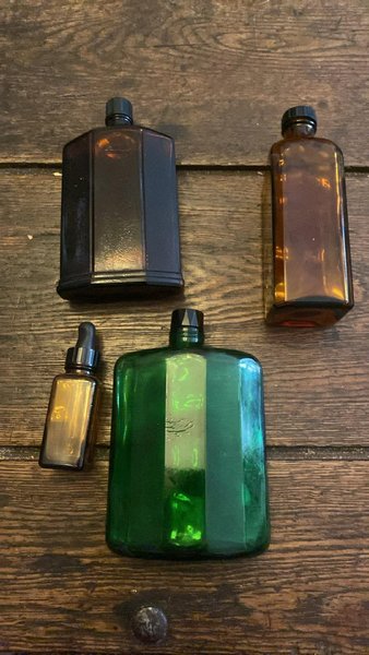 4 äldre mindre flaskor. ( medicinflaskor ) ?