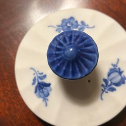 Disse 2 små, blå klukflasker fra Holmegaard er rigtigt kunsthåndværk. Er samleobjekter og også super til gaver f. eks. med din egen kryddersnaps i. Flaskerne har en unik form. Den ene er 15 cm høj, den anden er 14 cm. høj, begge målt med propper.