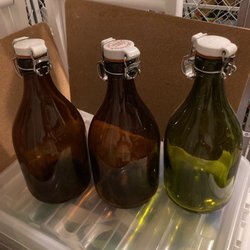 8 olika flaskor med snabb lock, vet inte vad som flaskorna kallas? Olika storlekar