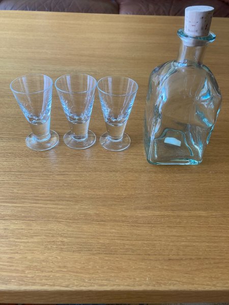 Karaff med tre snapsglas
