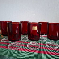 11 stk rødvinsglas med en højde på 11,5 cm. De 9 er fine i standen og koster 40 DKK pr stk. 1 med et mikroskår på kanten og 1 med en ridse på siden. Medfølger gratis ved køb af de andre.