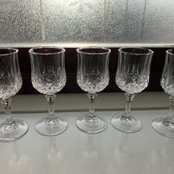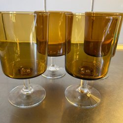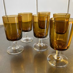 Fem bärnstensfärgade starkvinsglas