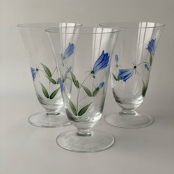 Glasen har höjd ca 21 cm och diameter upptill ca 7,7 cm. Alla glasen är hela och fina utan nagg och sprickor. Lite lätt bruksslitage/mindre märken förekommer från tidigare användning.