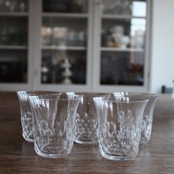 5 st Glas. Perfekt för alla tillfällen. De är 7.5 cm höga o 8 cm i diameter upptill. De är stapelbara